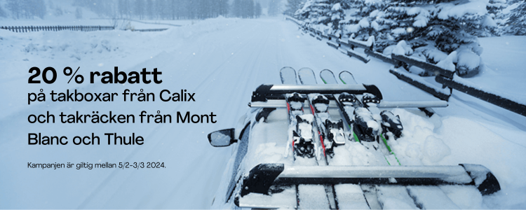 Hitta dina favoriter här (koden gäller endast för takboxar från Calix samt takräcken från Mont Blanc och Thule).