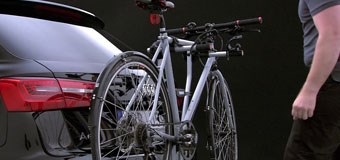 När du monterar cykelhållaren på bilens dragkrok får du tänka på att dragkulan kan vara smutsig, så var rädd om kläderna. Cykelhållaren ska gripa om kulan och får inte sitta snett.